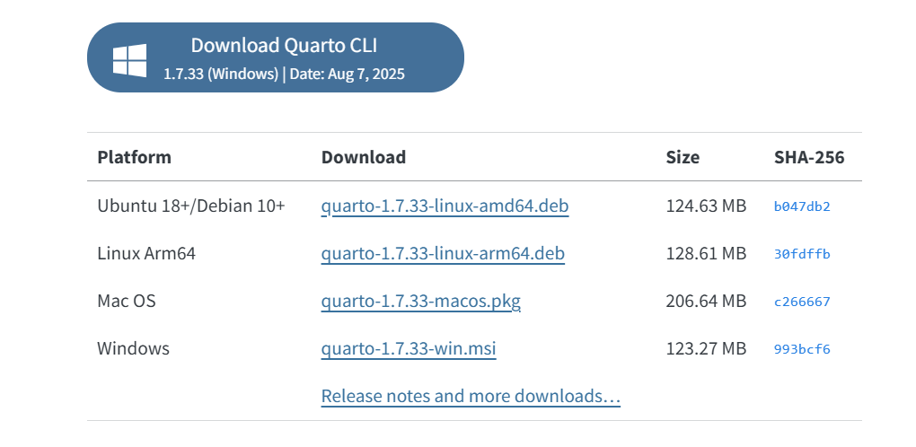 下面展示Windows种常见几种Tools及Quarto如何安装使用