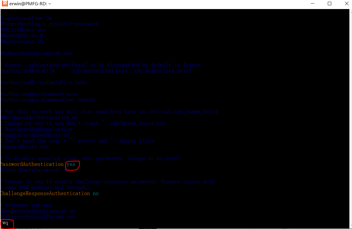 重新安装好openssh-server后,进行设置文件的修改,主要是开通权限